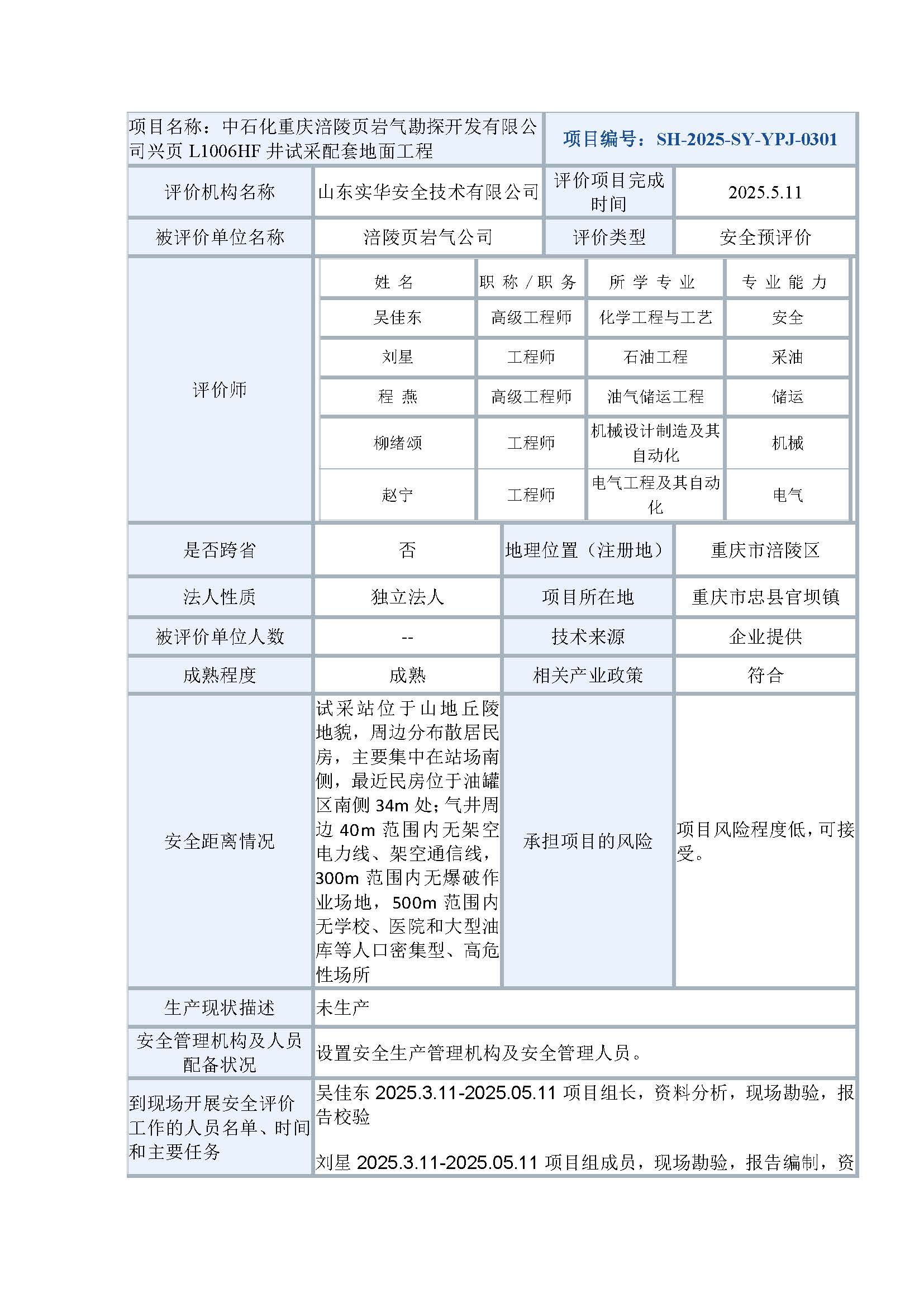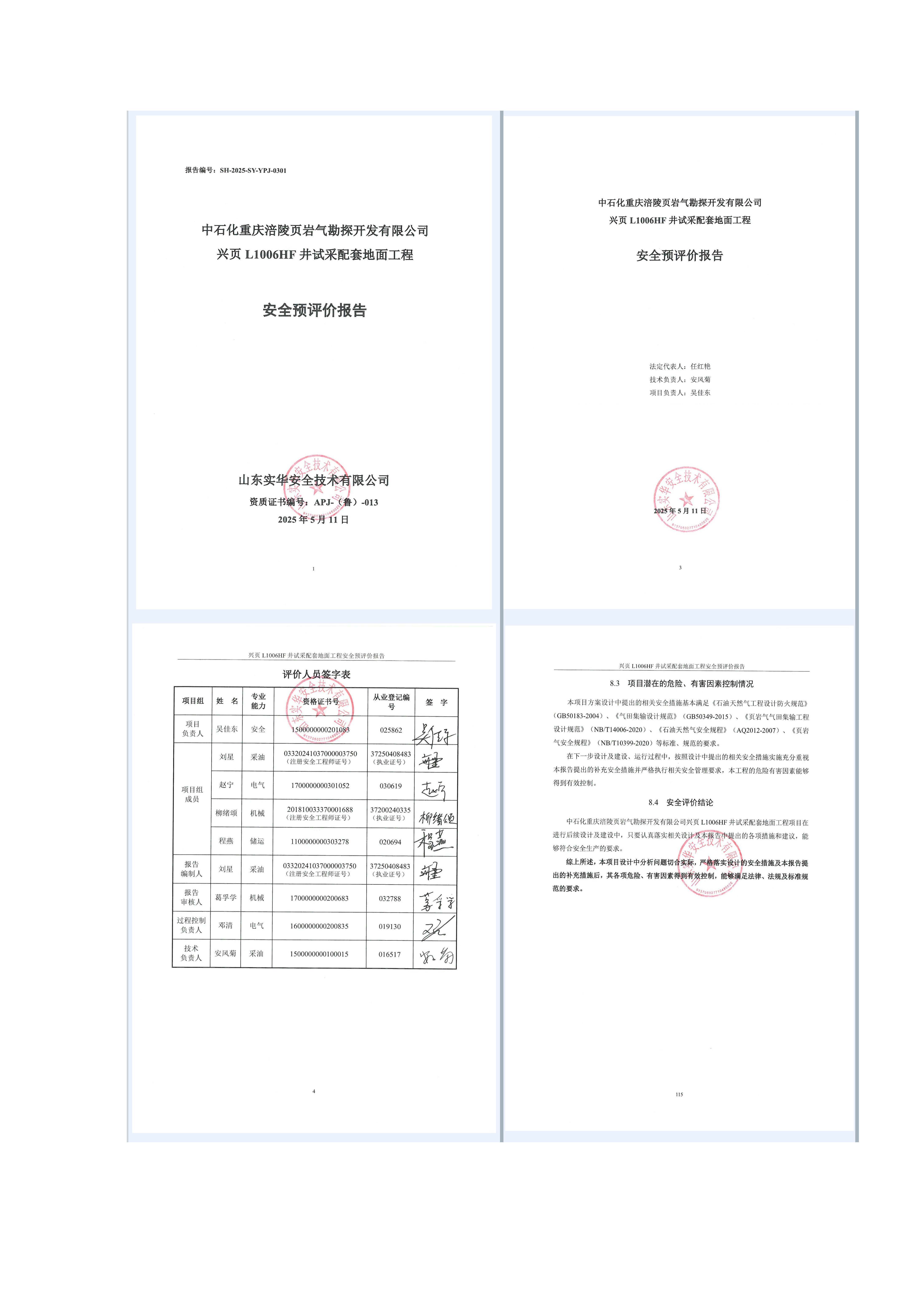 中石化重慶涪陵頁巖氣勘探開發有限公司興頁L1006HF井試采配套地面工程安全預評價