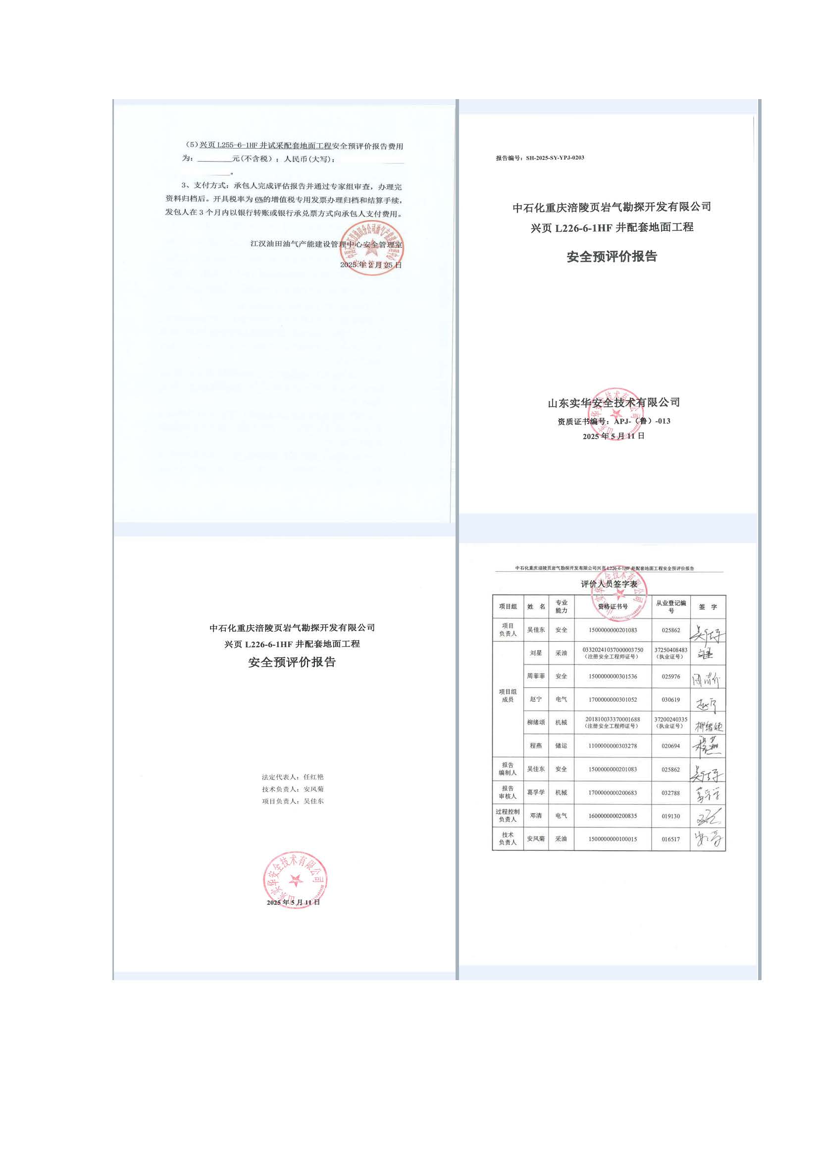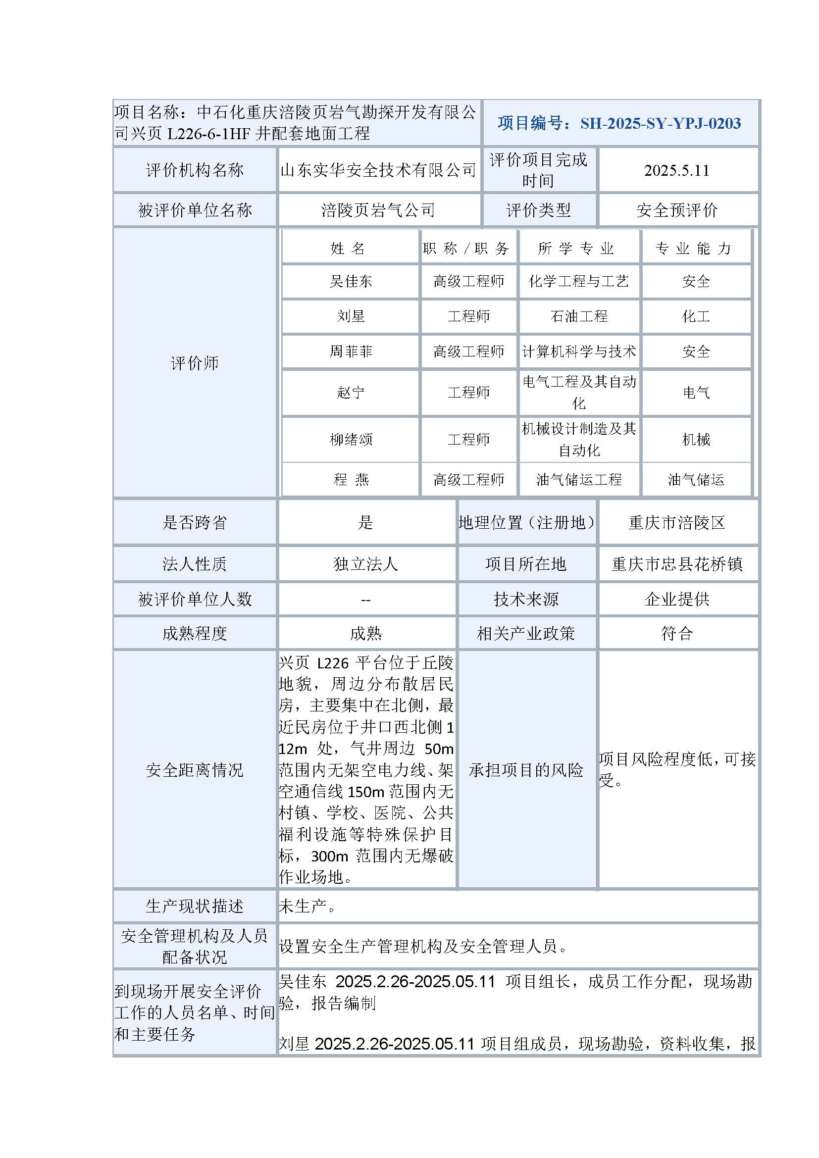 中石化重慶涪陵頁巖氣勘探開發(fā)有限公司興頁L226-6-1HF井配套地面工程安全預(yù)評(píng)價(jià)