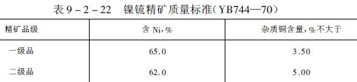 鎳銃精礦質(zhì)量標(biāo)準(zhǔn)列于表9-2-22。